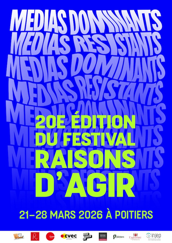 🎬 Festival Raisons d’Agir 2026 20ᵉ édition — du 21 au 28 mars 2026 à Poitiers Thème 2026 :« Médias dominants, médias résistants » Pendant une semaine, le festival mettra en dialogue universitaires, artistes, militant·e·s et professionnel·le·s des médias autour…